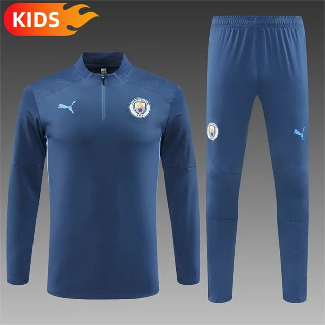 Manchester City Pull-Zip Trainingspak 'Blauw Steelstamp' - KINDEREN