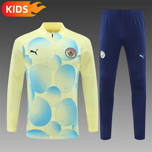 Manchester City Pull-Zip Trainingspak 'Lichtgeel' - KINDEREN