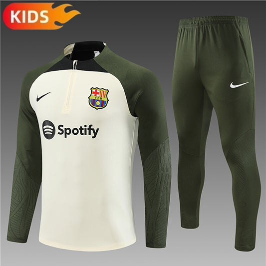 Barcelona Half-Pull Trainingspak 'Beige-Groen' 24/25 - KINDEREN