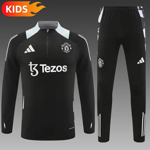 Manchester United Half-Pull Trainingspak 'Zwart/Wit' - KINDEREN