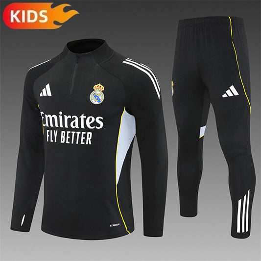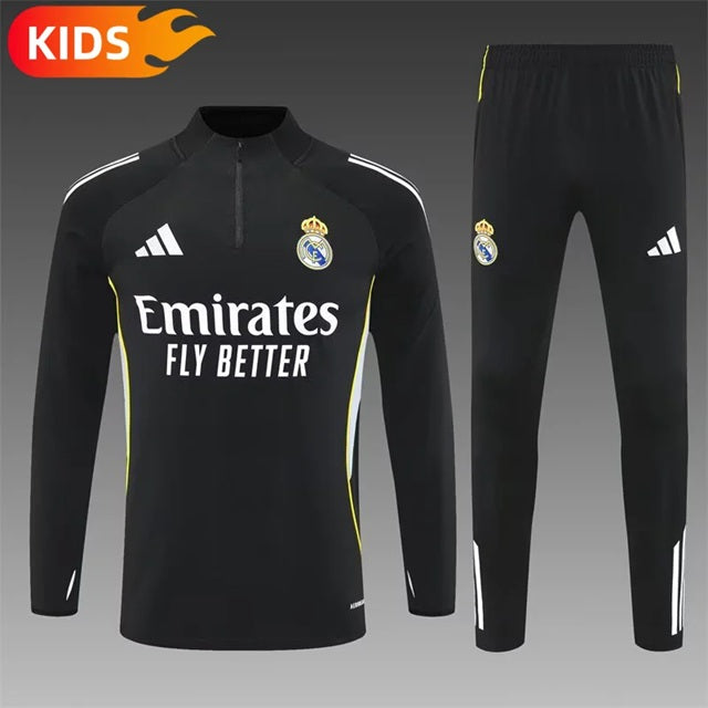 Real Madrid Half-Pull Trainingspak 'Zwart' 25/26 - KINDEREN