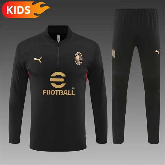AC Milan Half-Pull Trainingspak 'Zwart' - KINDEREN